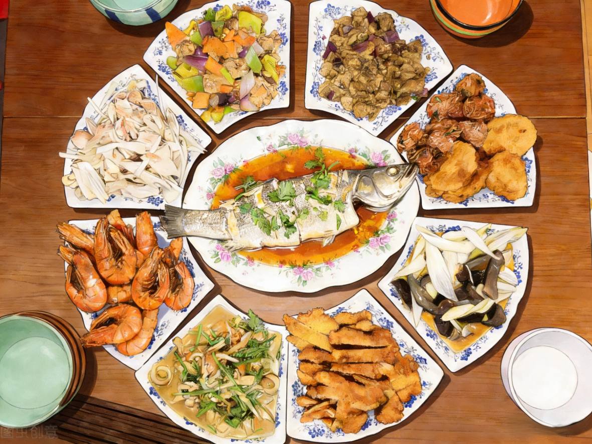 اگرچہ چین کے شمالی اور جنوبی علاقوں کی اپنی پاک روایات ہیں، لیکن یہ بات یقینی ہے کہ نئے سال کی شام کے کھانے میں کھانے کو خاص معنی دیا جاتا ہے۔ جیسے مچھلی کا مطلب ہے سال بہ سال خوشحالی کی خواہش، لیٹش چینی میں امیر ہونے کی طرح لگتا ہے۔